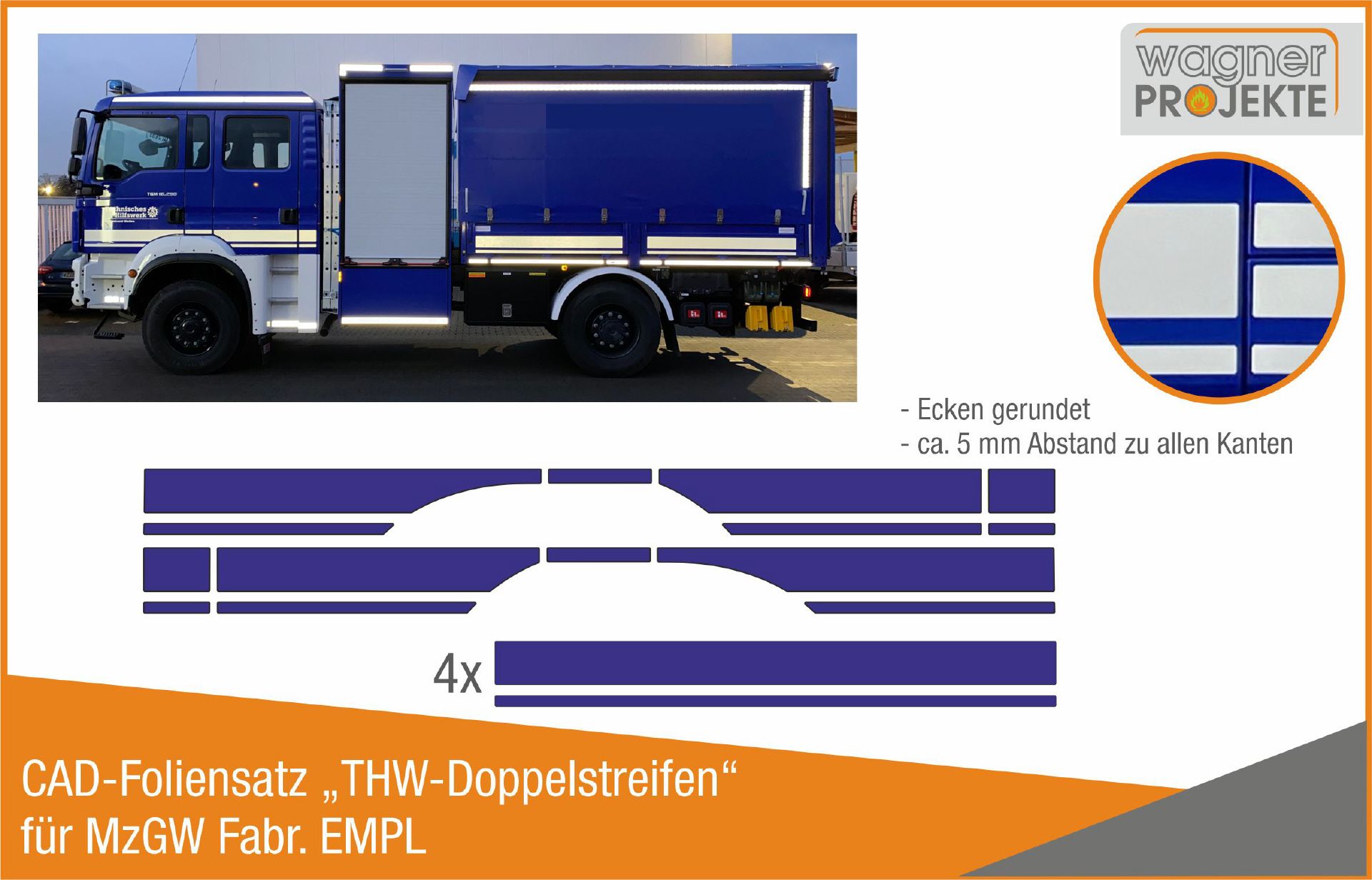 THW-Doppelstreifen passgenau CAD-vorgefertigt.