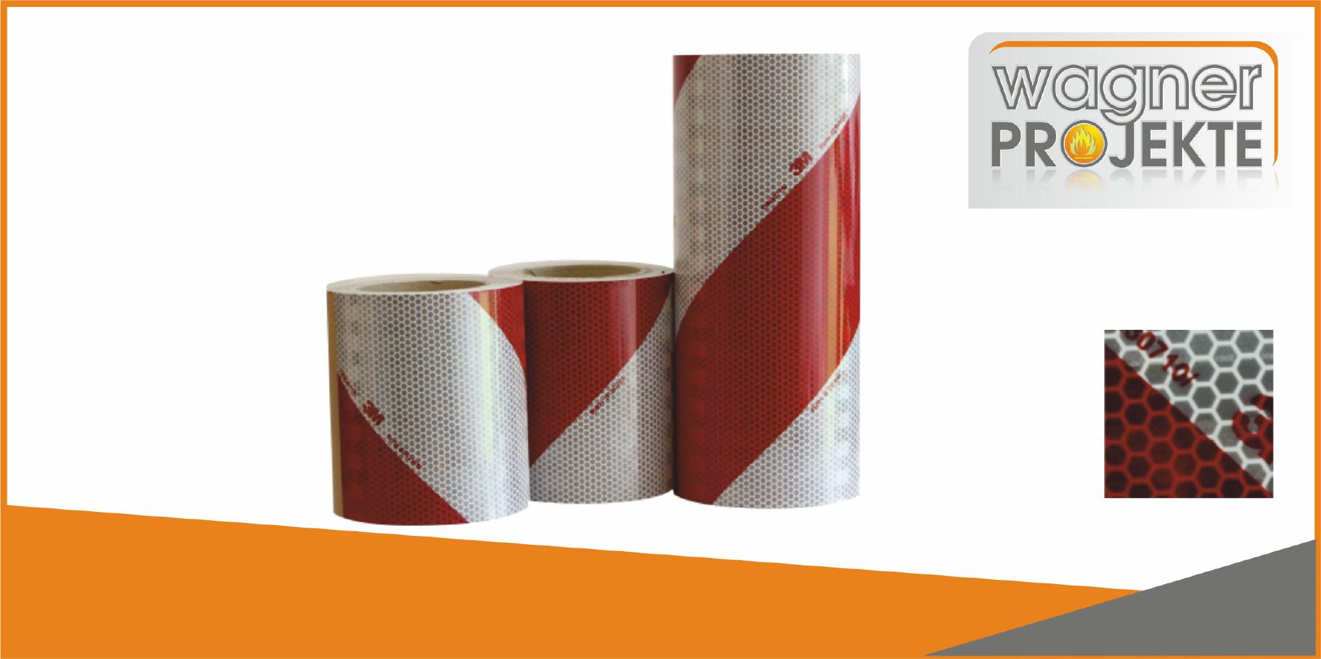 Metallisierte, flexible, stark reflektierende Warnmarkierung in „weiß/rot“ schraffierter Ausführung. Für Festaufbauten. Auffällige Blockstreifen, die für eine gute Weitwinkelreflektion sorgen. Vorteile: sehr dünnes und flexibles Material, daher einfach zu verarbeiten, auch auf unebenen Untergründen. Einlagige Folien-Konstruktion - ermöglicht einfache Applikation ohne zusätzliche Kantenversiegelung. 3M Comply und Controltac Klebstofftechnologie mit Luftkanälen für einfaches Positionieren und blasenfreie Verklebung.