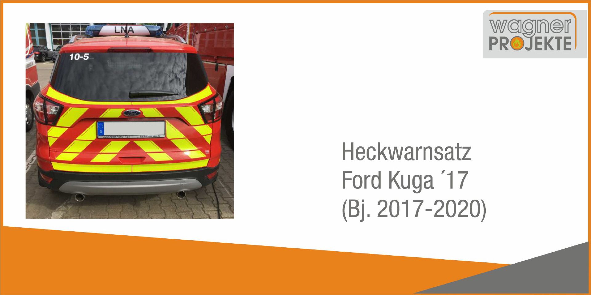 Heckwarnmarkierungssatz, verfügbar in den Farben rot/weiß reflektierend und rot/lime reflektierend. Umfang mehrteilig gem. Abbildung - bei lime/rot: optional mit Konturstreifen oben und unten lime.