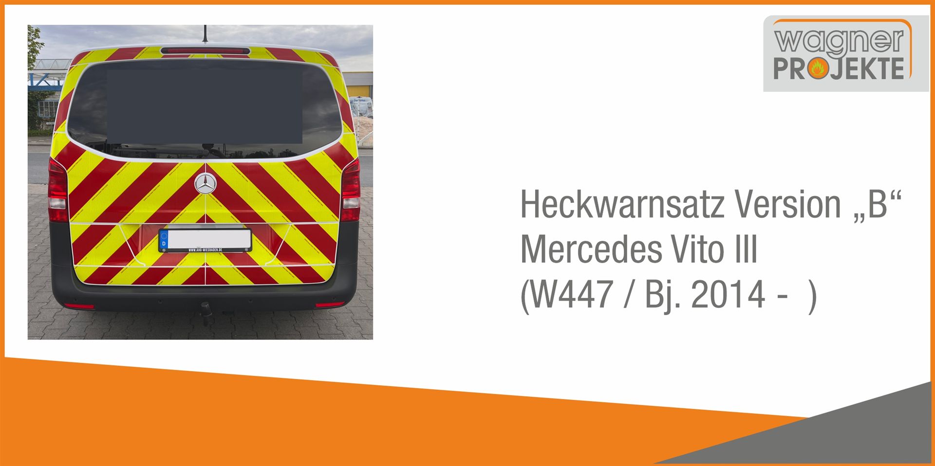 Der Satz umfasst die Warnmarkierung auf der Heckklappe nach techn. Möglichkeit größtmöglich einschließlich der Holme um die Scheibe herum, ohne Kontureinfassung.