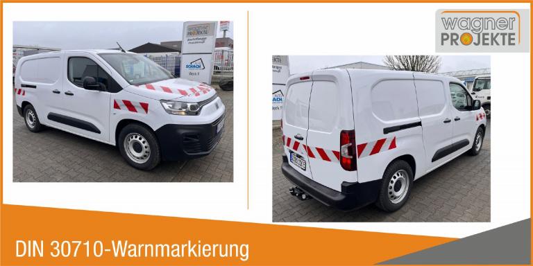 Passgenaue Warnmarkierungszuschnitte nach DIN 30710 für Fahrzeuge der PSA-Group, insbesondere FIAT, PEUGEOT, CITROEN.