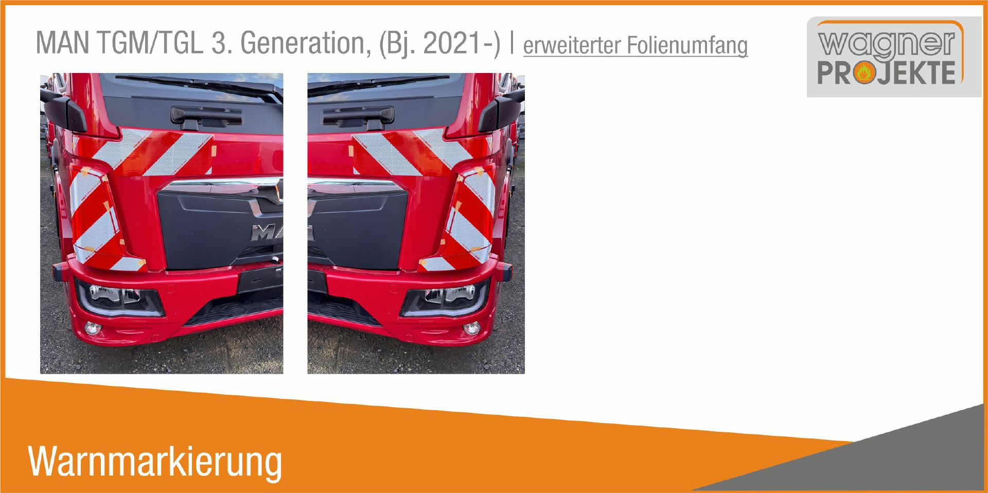 Mehrteilig für rechten und linken Windabweiser sowie Frontmaske rechts und links im Set. Passend gem. Abbildung für MAN-Fahrzeuge TGM und TGL, Euro 6 (Bj. ab 2021).