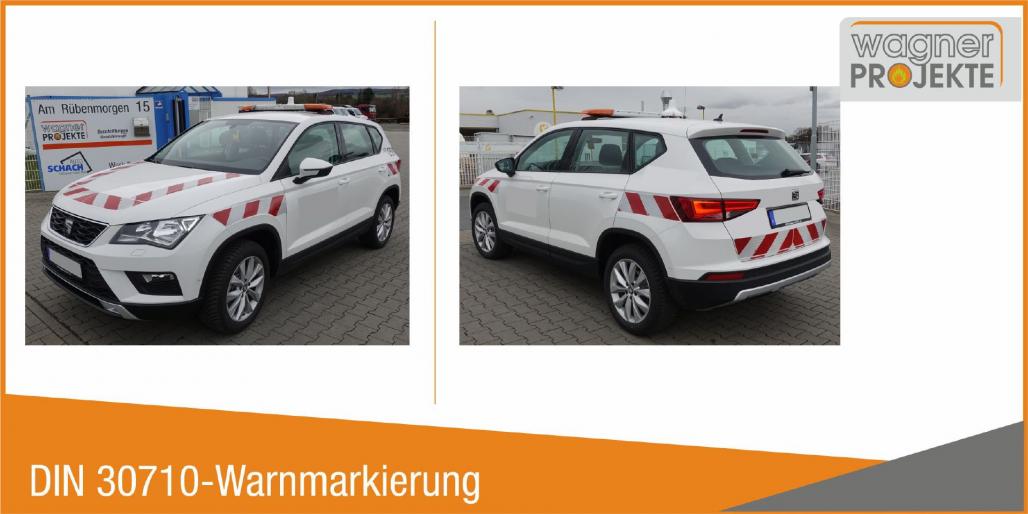 Warnmarkierungszuschnitt, passgenau fahrzeugsspezifisch CAD-gefertigt aus DIN 30710-konformen Material: