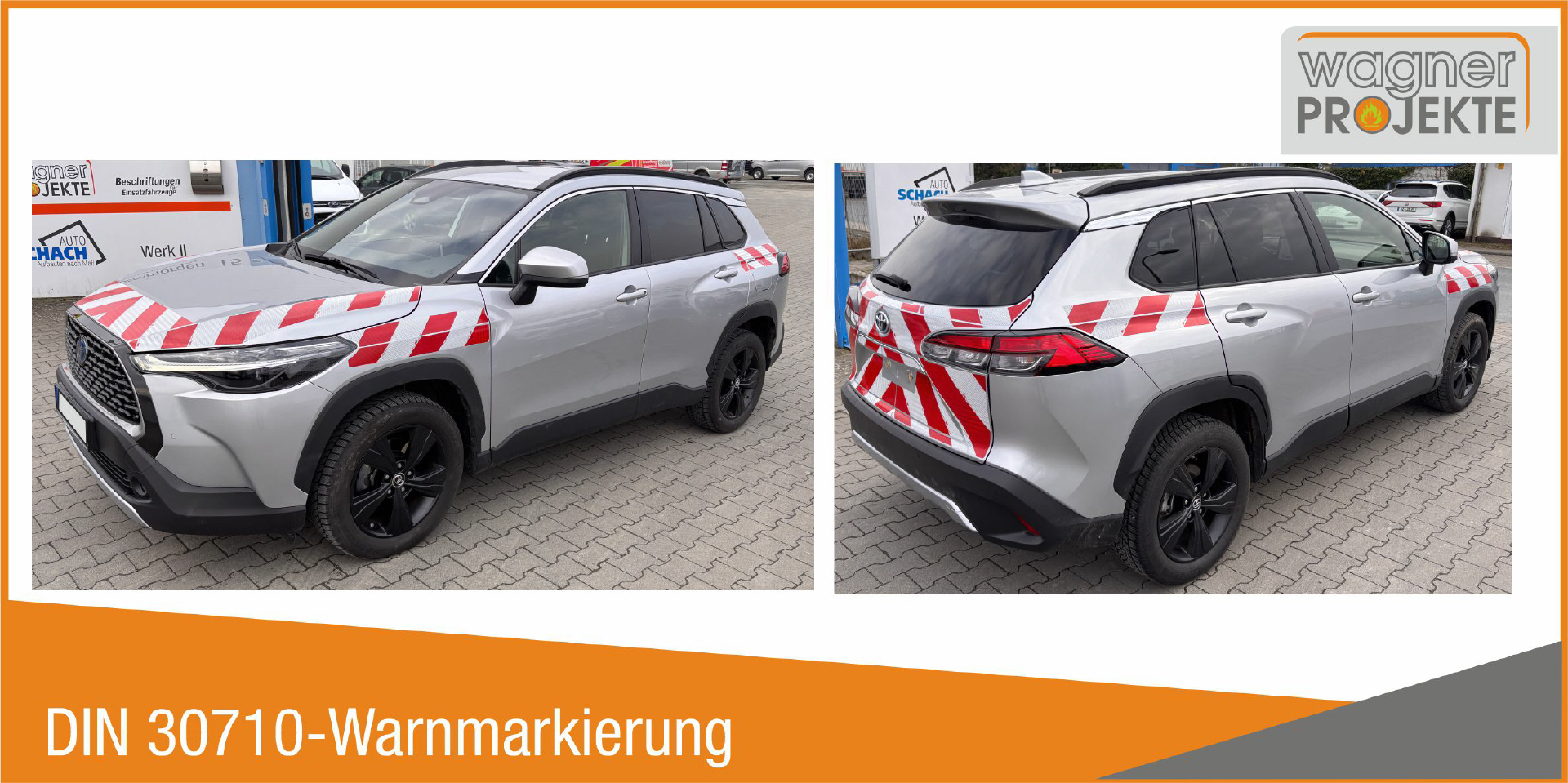 Warnmarkierungszuschnitt, passgenau fahrzeugsspezifisch CAD-gefertigt aus DIN 30710-konformen Material:
