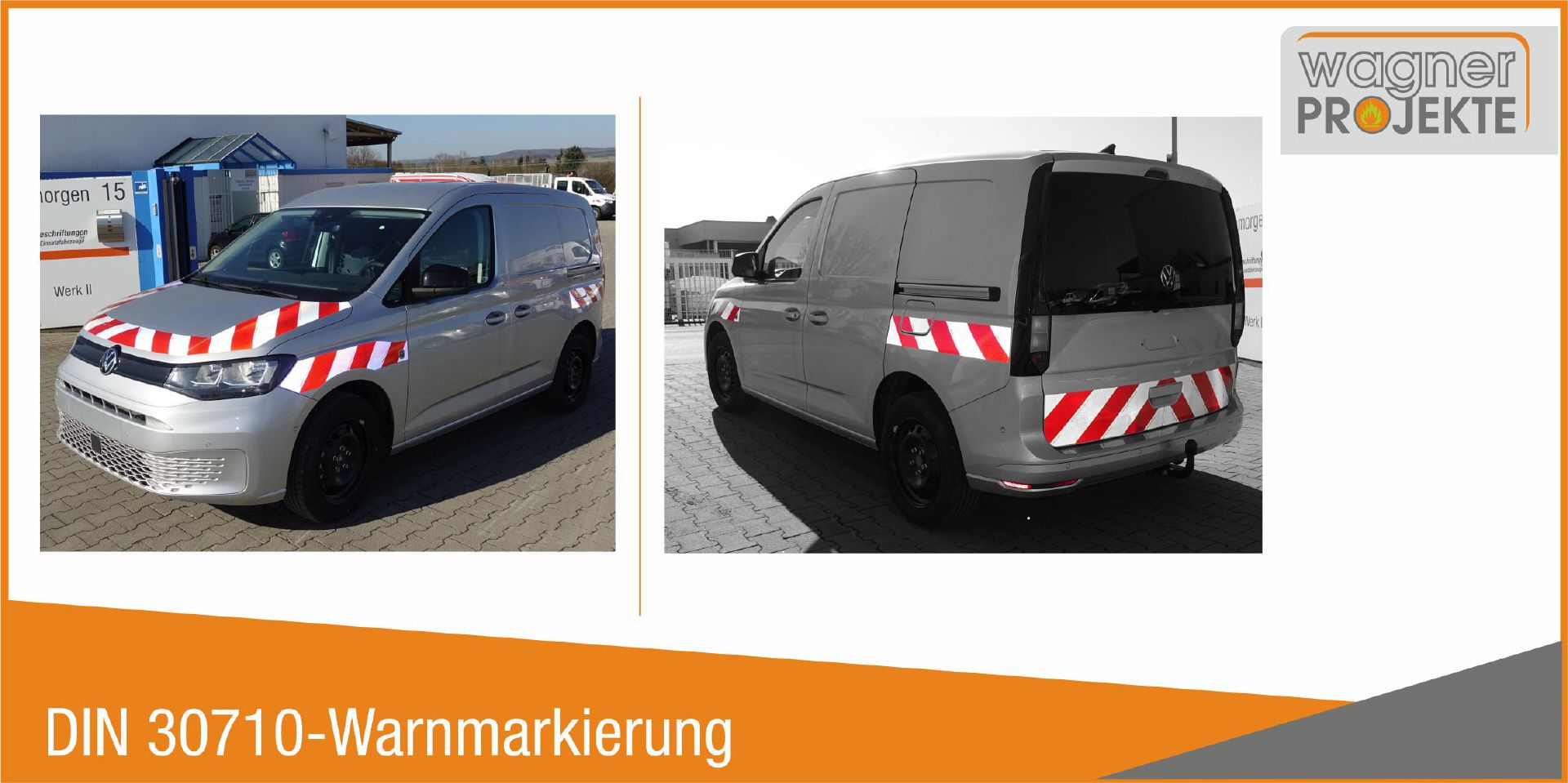Warnmarkierungszuschnitt, passgenau fahrzeugsspezifisch CAD-gefertigt aus DIN 30710-konformen Material: