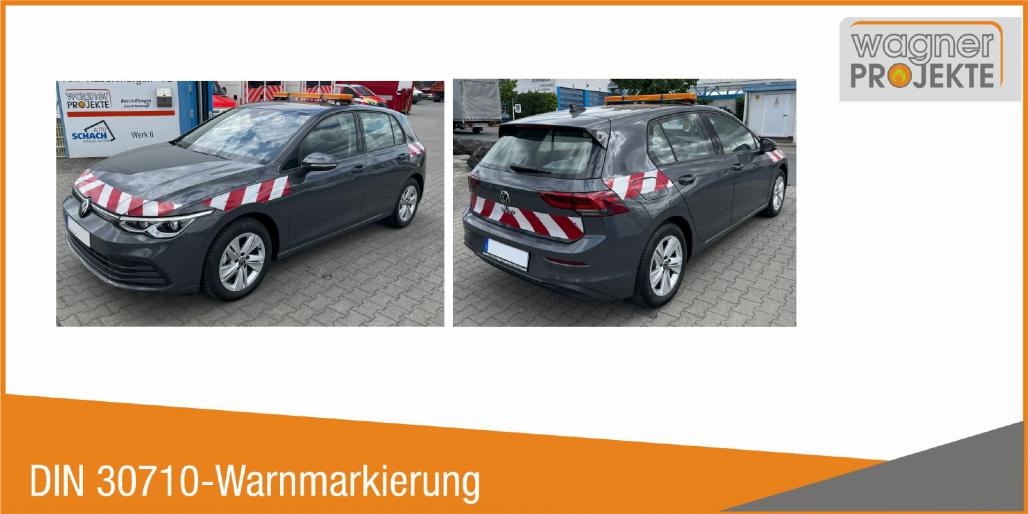 Warnmarkierungszuschnitt, passgenau fahrzeugsspezifisch CAD-gefertigt aus DIN 30710-konformen Material für den VW Golf 8, Limosine: