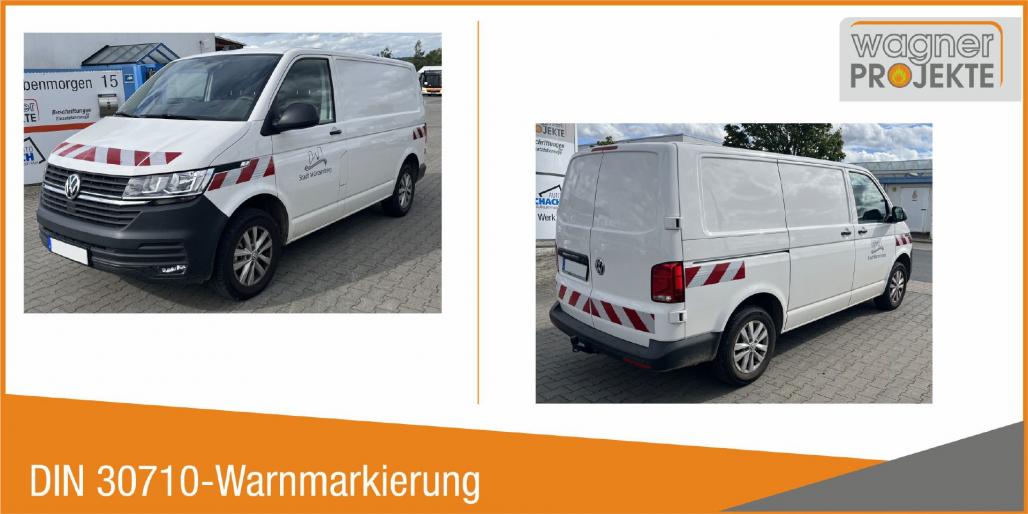 Warnmarkierungszuschnitt, passgenau fahrzeugsspezifisch CAD-gefertigt aus DIN 30710-konformen Material für VW-Transporter Bus/Kastenwagen/Pritsche: